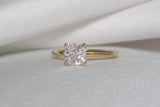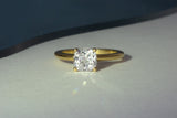 - Pictured: 18K yellow gold holding a 1.52ct cushion cut diamond.