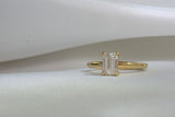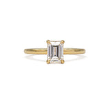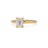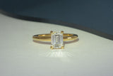 - Pictured: 18K yellow gold holding a 1.50ct emerald cut diamond.