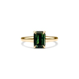 The Maria Ring is a striking expression of personal style and a timeless representation of the promise and connection shared by lovers. Crafted in 18K yellow gold, it features a 2.46 carat green emerald cut Australian sapphire that commands attention.